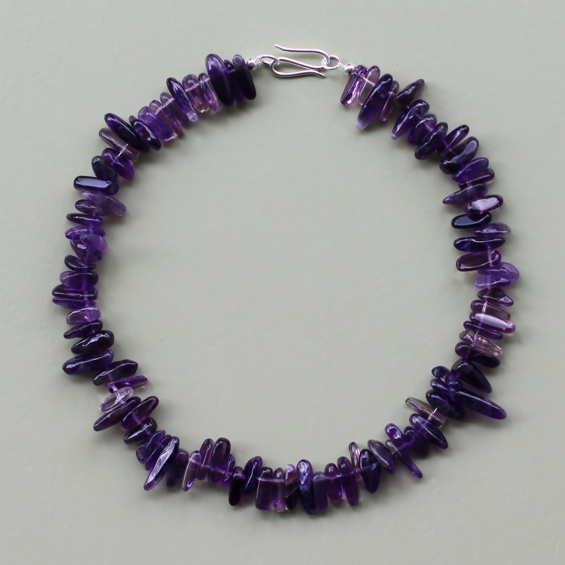 Unsere handgefertigte Edelsteinkette Agape ist mehr als nur ein Schmuckstück – sie ist Begleiter auf Deinem Weg zu einem bewussten und offenen Leben. Mit jedem Tragen spürst Du die Verbindung zur Natur und die liebevolle Handarbeit, die in jedem Detail steckt. Die sorgfältig ausgewählten Amethyste verleihen der Kette eine natürliche Schönheit und erinnern Dich daran, mit offenem Herzen durch die Welt zu gehen.