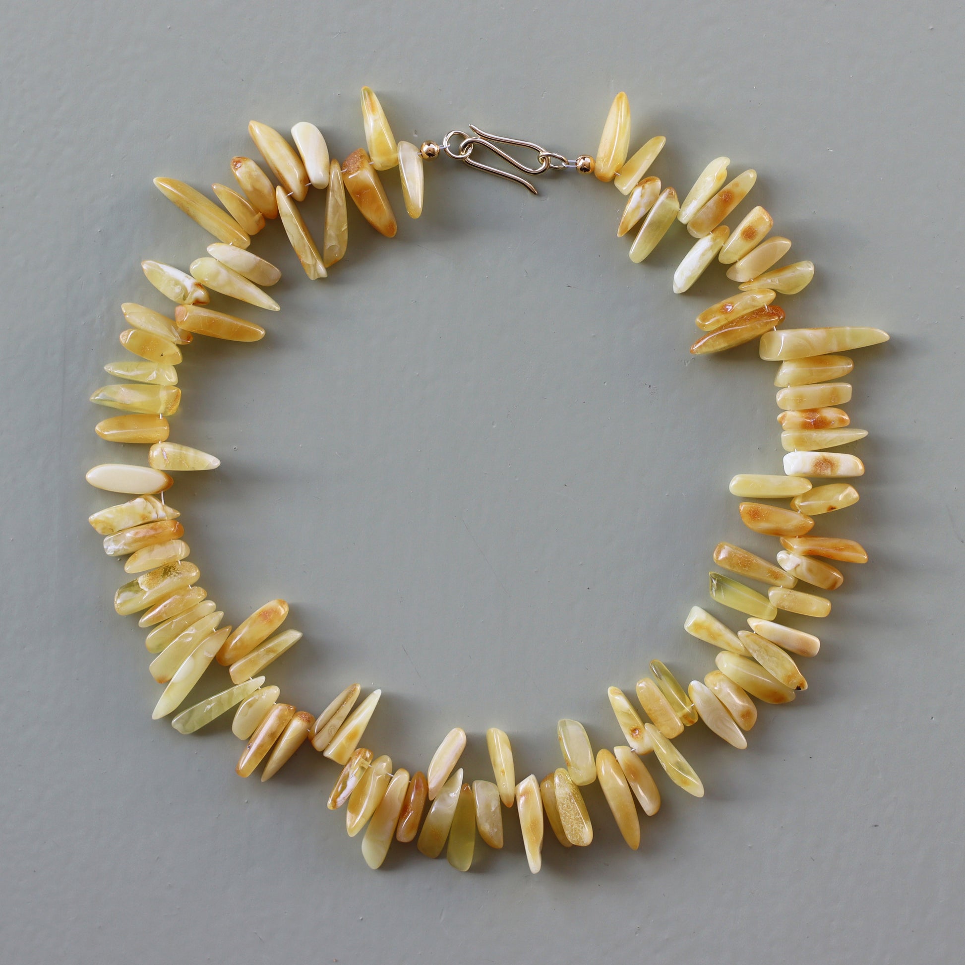 Unsere handgefertigte Edelsteinkette Honeypot ist mehr als nur ein Schmuckstück – sie ist Begleiter auf Deinem Weg zu einem bewussten und offenen Leben. Mit jedem Tragen spürst Du die Verbindung zur Natur und die liebevolle Handarbeit, die in jedem Detail steckt. Die sorgfältig ausgewählten Bernsteine verleihen der Kette eine natürliche Schönheit und erinnern Dich daran, mit offenem Herzen durch die Welt zu gehen.