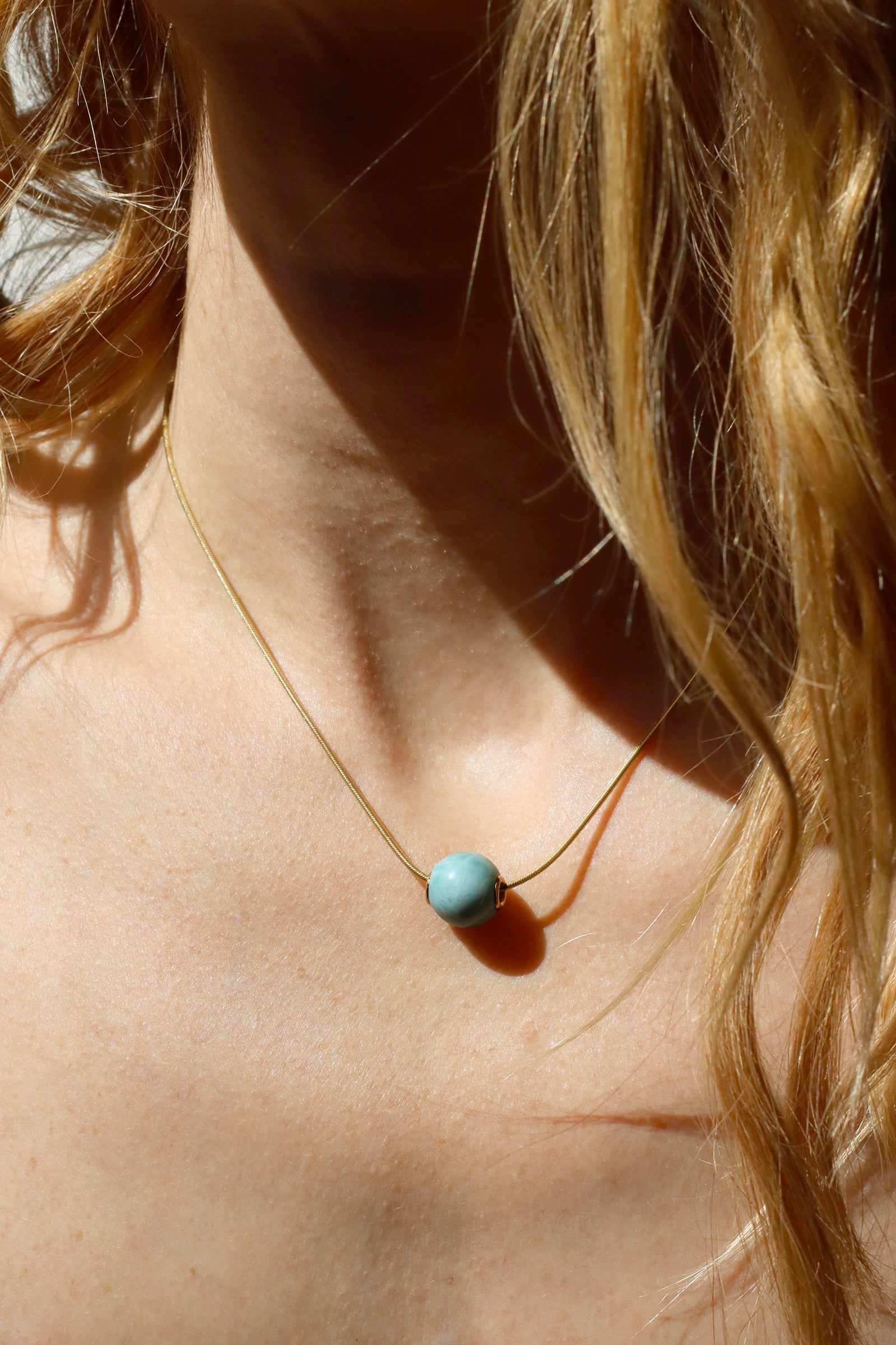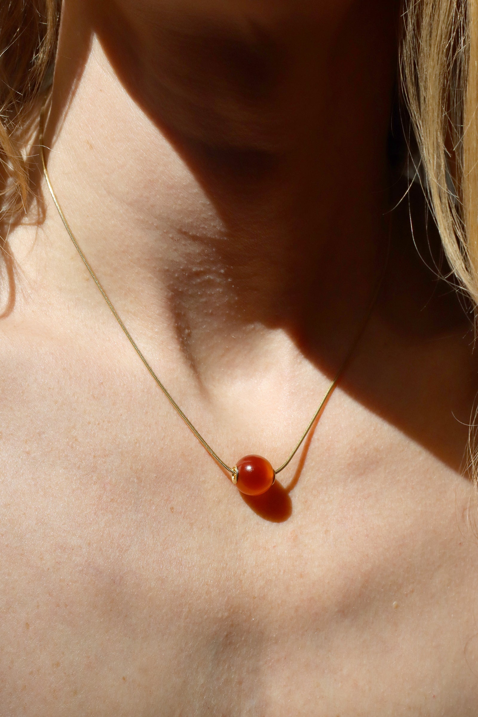 Unsere wunderschönen Schmuckkugeln aus geschliffenen und polierten Edelsteinen – auf Wunsch mit eleganter Schlangenkette aus Sterling-Silber oder vergoldetem Silber in unterschiedlichen Längen. Die Edelstein-Bohrung ist beidseitig mit silbernen oder vergoldeten Endkappen versehen, sodass sich die Kettenvergoldung auch bei häufigem Tragen nicht abreibt.